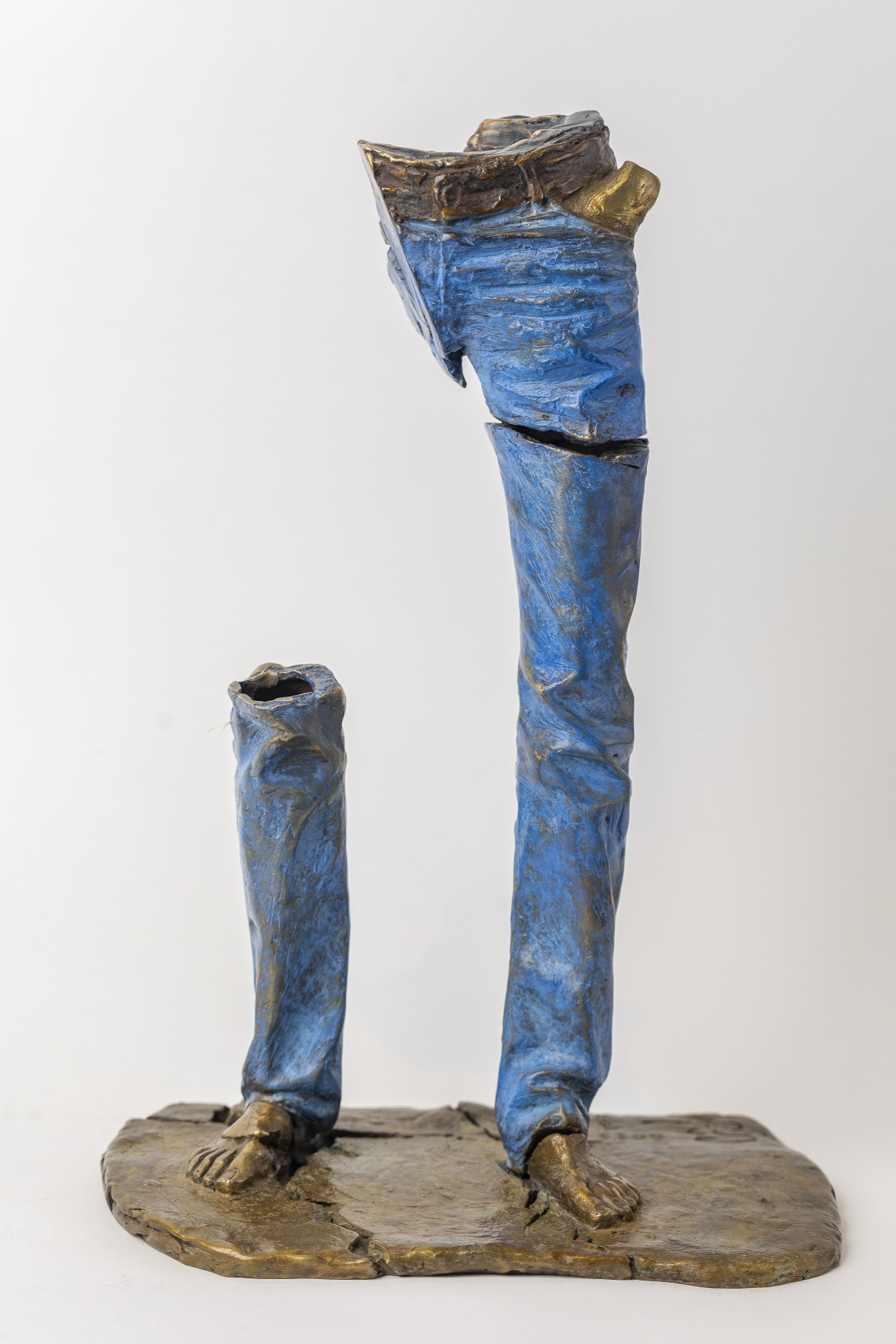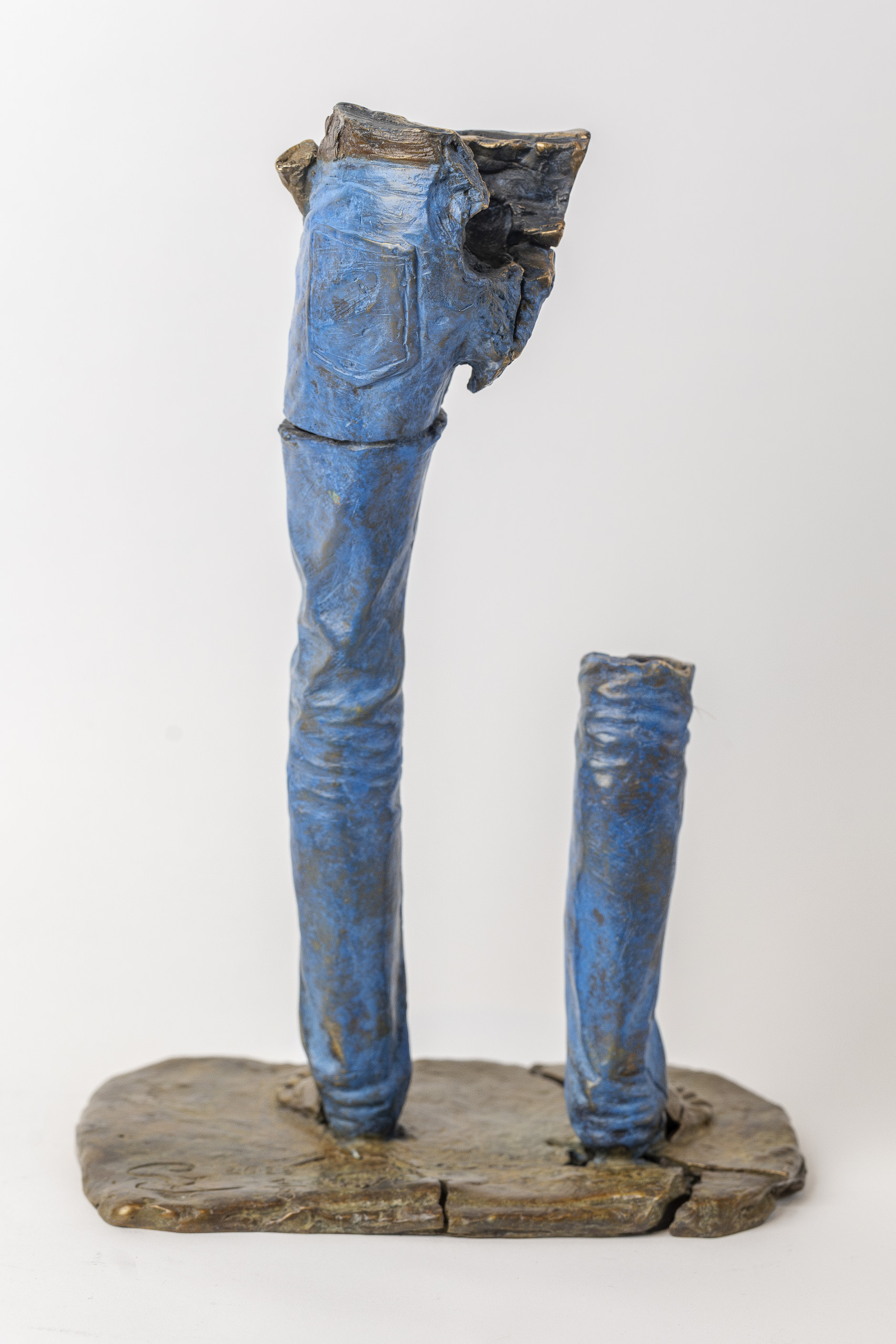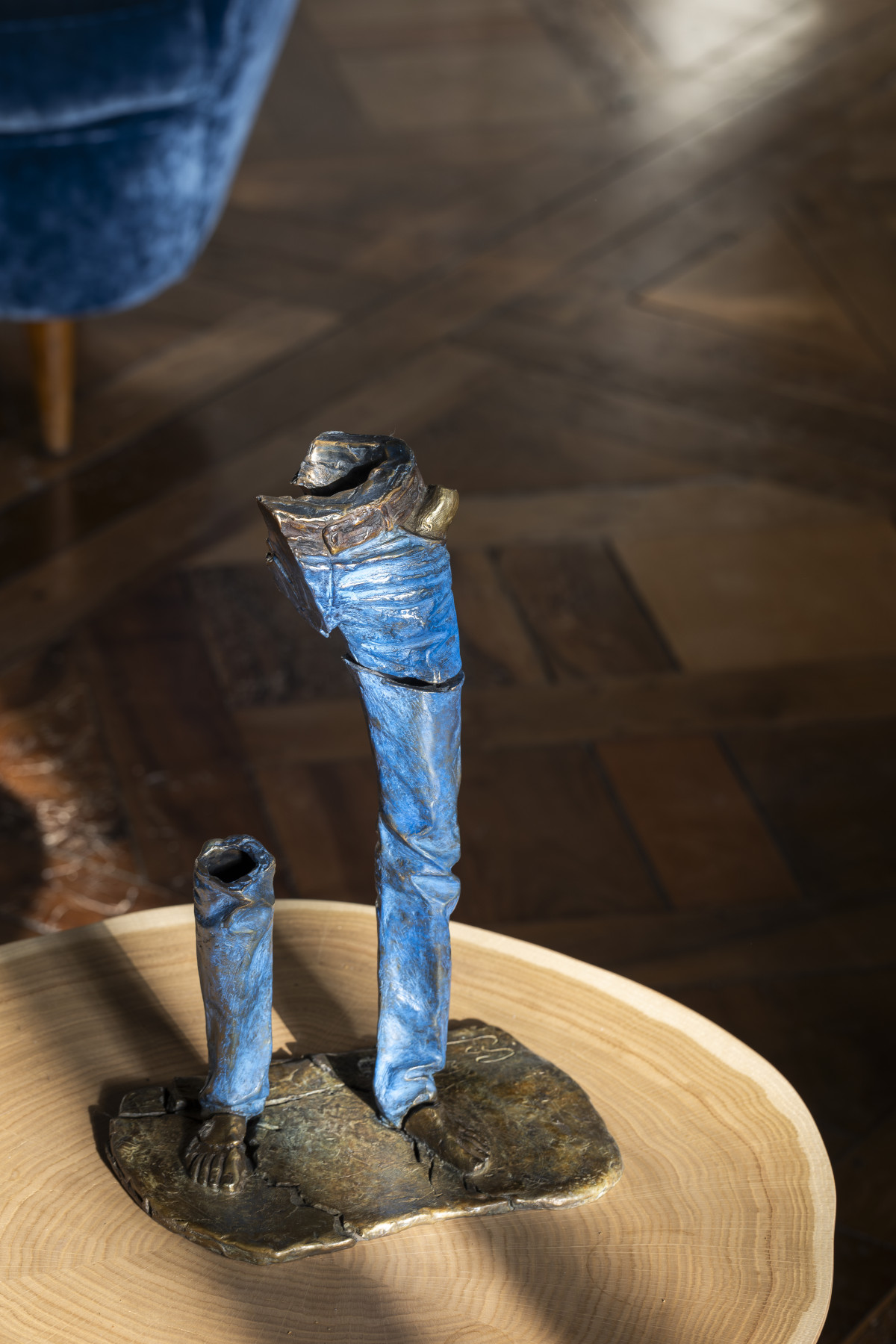 With Gambe, Bruno Catalano renews his thoughts on tearing and disappearance and accentuates his process by focusing solely on the lower limb of the body. The pair of legs of this anonymous traveler rests on a base and seems to be at rest.