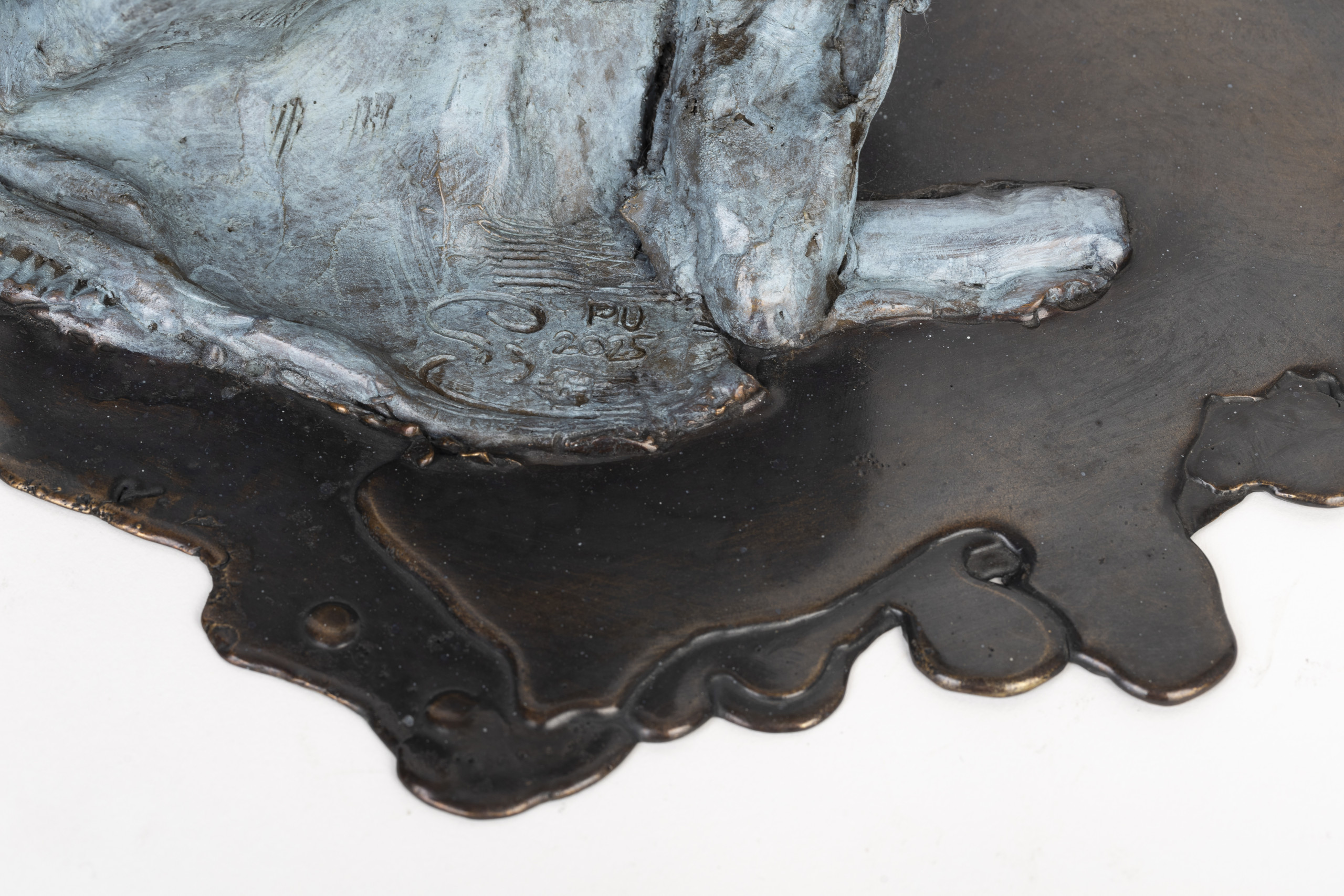 Pauvre rasta prend comme modèle un proche de l’artiste, vivant à Crest. Bruno Catalano joue ici une nouvelle fois avec les potentialités offertes par la matière : l’aspect liquide est contredit par la solidité du bronze. Le thème, d’apparence légère, donne à voir un personnage en train de plier, couler et disparaître. Derrière cette figure du rasta, on peut voir une allégorie de la paix, que souligne le pendentif arboré par le personnage.