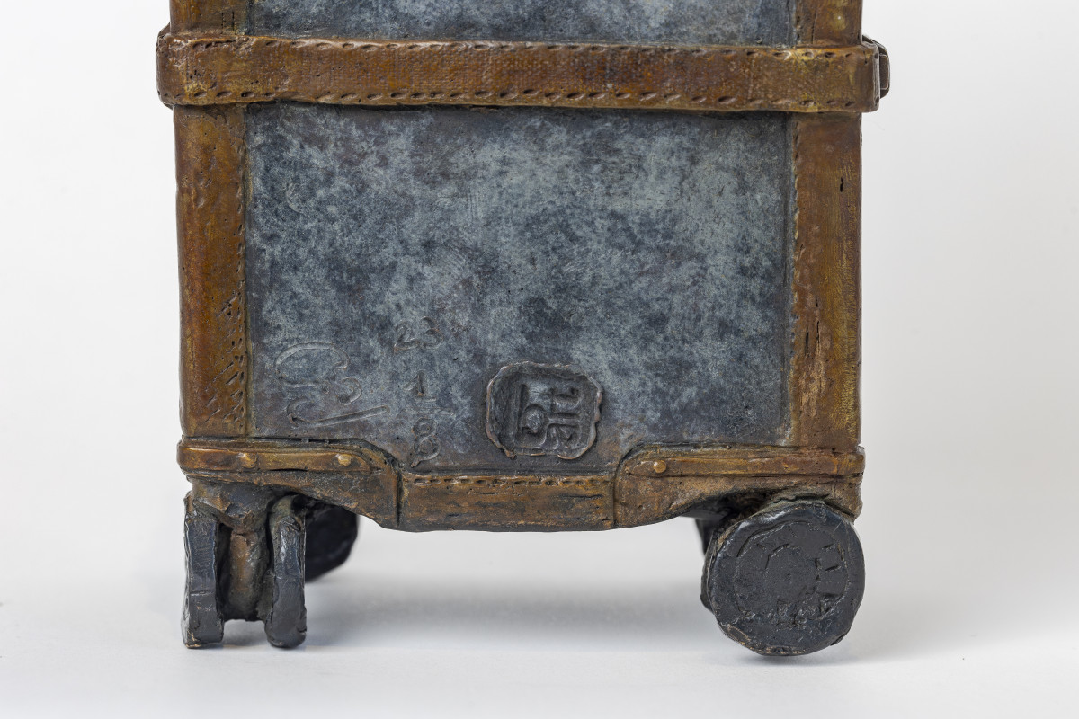 Les bagages sont particulièrement importants dans l’œuvre de Bruno Catalano. Ils font le lien entre la tête qui pense et les pieds qui marchent. Symboles du poids des expériences, du vécu, et de sentiments très personnels. Chacun de ces bagages fait partie intégrante du voyageur qui le porte, il est le reflet de sa personnalité, de son aura.